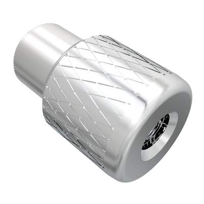 Captive Nut, M5 X 0.8, Blind Hole, Steel Ferrule, Aluminum Knob, Bright