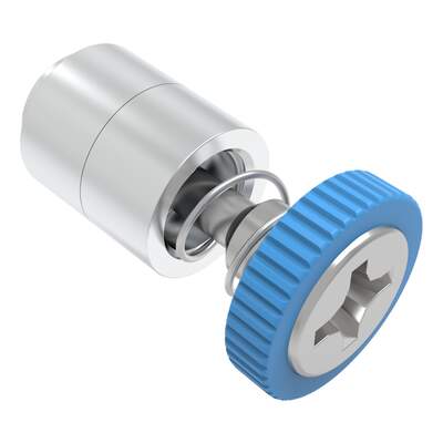 Captive Screw, M3 X 0.5, Flare-in, Phillips Recess, Knurled Blue Knob