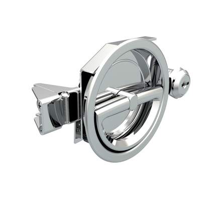 Flush Cam Latch, Medium Size, Turn Counterclockwise to Latch / Lock, Single or Three – Point Latching, Bail Handle Style, Chrome Plated, Bright