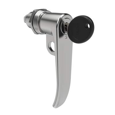 Quarter-Turn Cam Latch, Key Locking (Reversible Key), L-Handle, Pad Locking, Sealed, Zinc Alloy, Chrome Plated, Bright