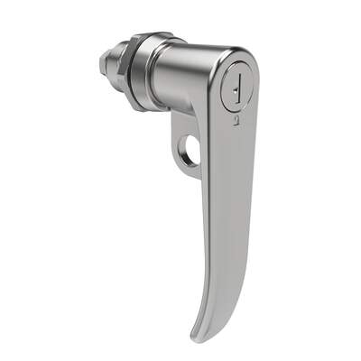 Quarter-Turn Cam Latch, Key Locking (Reversible Key), L-Handle, Pad Locking, Sealed, Zinc Alloy, Chrome Plated, Bright