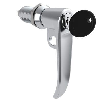 Quarter-Turn Cam Latch, Key Locking (Reversible Key), L-Handle, Pad Locking, Sealed, Zinc Alloy, Chrome Plated, Bright