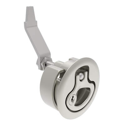 Compression Latch, Large Size, Key Locking, 12 – 22.5mm (.475 – . 885 in) Door thickness, 23.5 – 35mm or 74 -88mm (.92 – 1.38 in or 2.91 – 3.47 in) Grip, 316 Stainless Steel, Electropolished