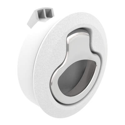 Push-to-Close Latch, Medium Size, No Restriction, 7 – 12 mm (.275-.475 in) Door thickness, 25.5 mm (1.00 in) Grip, White Plastic and 316 Stainless Steel, Natural and Electropolished