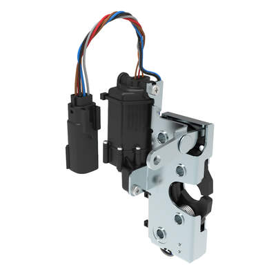 Rotary Push-to-Close Latch, Heavy Duty Size, Two Stage, 12 V Electronic Actuation with Switch, Perpendicular Lever, 7.2 mm Through Hole, Steel, Zinc Plate, Bright chromate