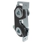 Rotary Push-to-Close Latch, Large Size, Single Stage with Bumper, Bottom with bracket, M6 Thread, Steel, Zinc Plate, Bright Chromate, Bright