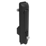 Multi-Point Compression Latch Actuator, Key Locking, with Padlock Hasp, DIN profile (Lock not supplied), NEMA 4 / IP66 Sealed, 24 – 25.5mm (.94 – 1.00 in) Door thickness, Zinc alloy, Powder Coated, Black